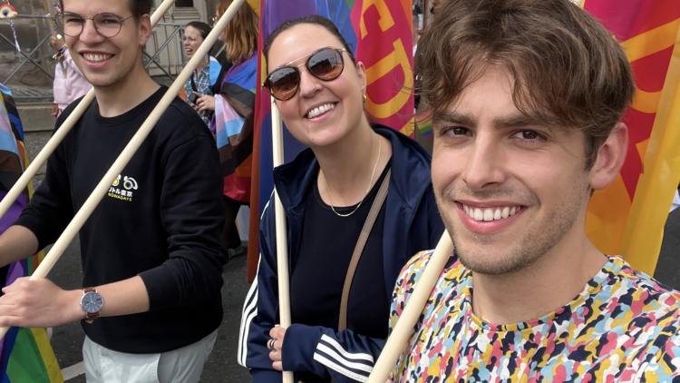 CSD Fürth - FDP mit Fußgruppe dabei Felix Bartsch, Gülden Hennemann und Dominik Paslawski auf der Fürther CSD-Parade 02.08.2025